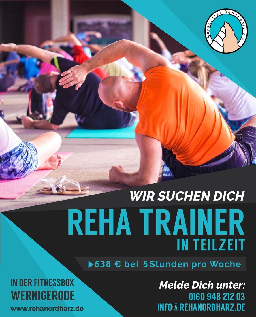 Der Nordharzer RehaSport Verein sucht einen Trainer/eine Trainerin in Teilzeit zur Verstärkung des Teams. Die Kurse finden bei uns in der FitnessBox statt. Bei Interesse oder Rückfragen bitte meldet Euch unter 0160-94821203.